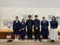 この1年間、2学年(新3学年)生徒6名が「総合的な探究の時間」土浦市立博物館との連携事業として、活動を行ってきました。この度、聞き取り調査の成果としてまとめたレポートが、同博物館内にて展示されています。写真は、生徒達が展示の様子を見学した時のものです。