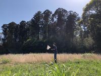 (写真は、研究のためのフィールド活動中の内山さんです)