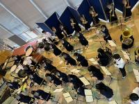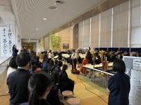 生徒ホールでは、吹奏楽部が歓迎のミニコンサートを開催し、大勢の観客が演奏に拍手を送っていました。