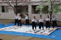 本日放課後には、本校中庭にて、書道部のパフォーマンスが行われました。豪快勝つ繊細なパフォーマンスに、新入生も引き込まれていました。
