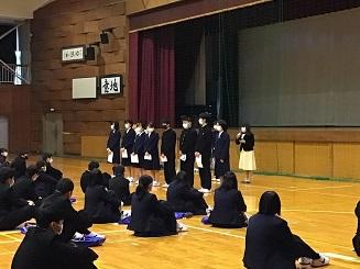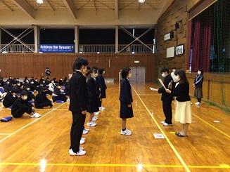 12月17日(金)の学年集会時に、学校長より優秀者8名に賞状と賞品が贈られました。